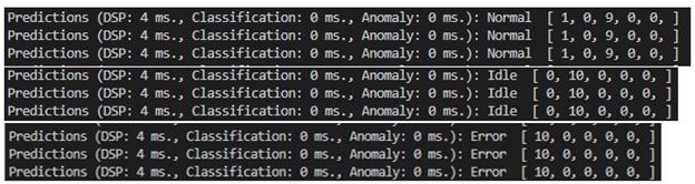 Build and run the code and start monitoring your motor. Below you can see my ML output classifying the new sensor
