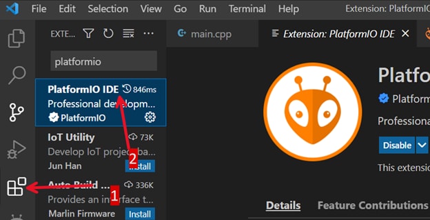 - Search for the official PlatformIO IDE extension