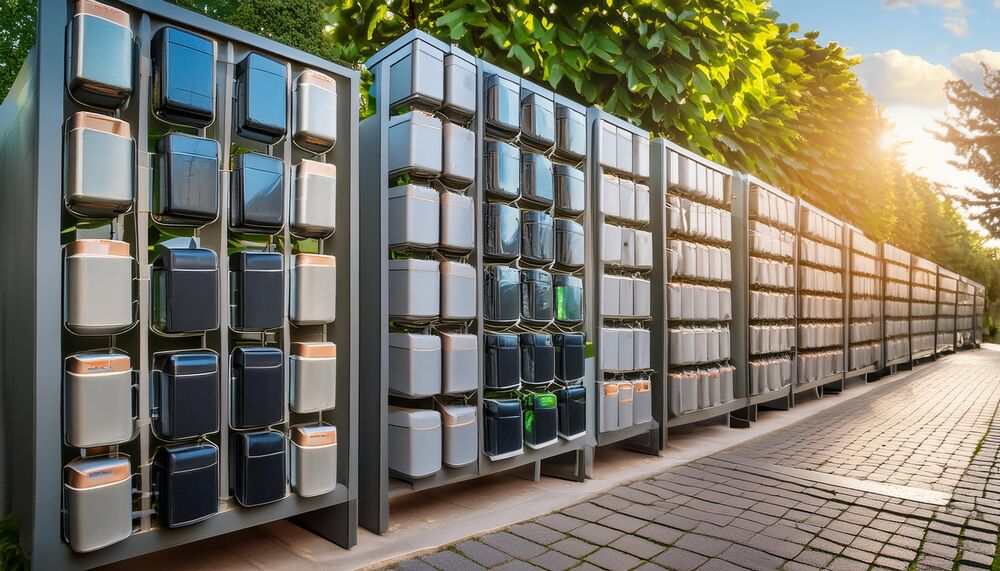 Figure 3: A rendering of batteries for electric scooters that can be removed, placed in a charging wall, and then replaced by a fully changed battery. (Source: Generated by AI).