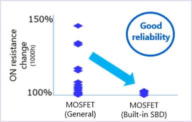 - Low ON resistance and a higher Gate Threshold Voltage (Vth) help prevent malfunctions like accidental turn-on